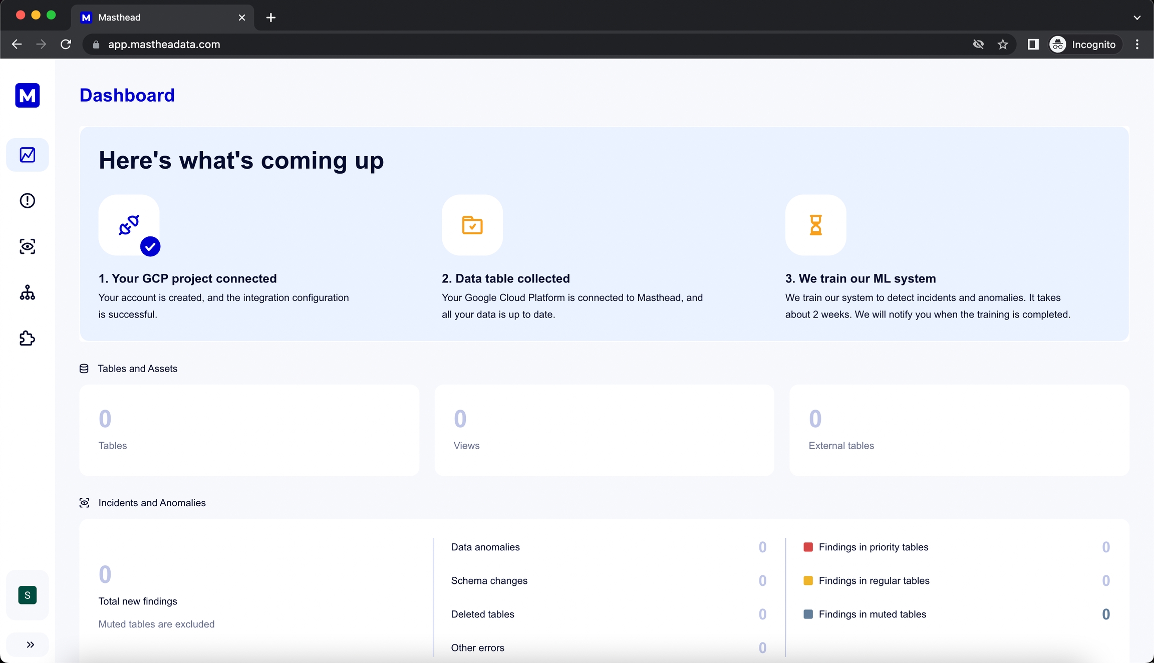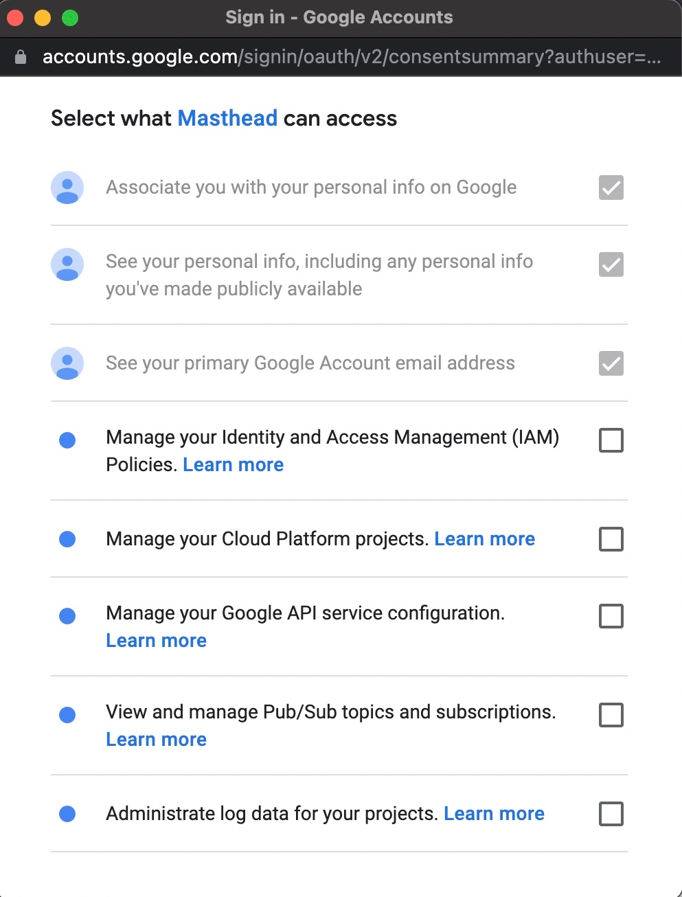 We offer a few options to connect Masthead to your Google Cloud environment: